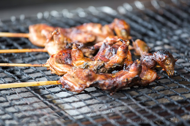 It was our last day in Kyoto, and we planned to visit the Fushimi-Inari shrine in the morning and then head to Nara in the afternoon, but it didn't work out like that. We got up late instead and headed down to Fushimi-Inari in time for lunch! The entrance to the shrine was a street lined with the usual array of shops, stalls and restaurants. We passed one stall selling barbecued sparrow - didn't try it. Instead we had some ramen and tempura in one of the restaurants before heading up to the shrine. It was raining and the skies were not looking promising, but it was still a stunning place.