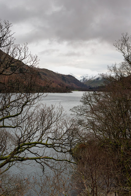 The following morning I didn't make it up for sunrise, as nothing was particularly forecast. Sometimes sleep has to come first. We decided to do a little road-trip given that it was our last day and we still hadn't exactly seen much of the region. The distances aren't great, and the lakes not huge, but given the windiness, hilliness and narrowness, driving anywhere takes a while. I decided on a route taking us to Ullswater and Derwentwater, also passing Windermere, Thirlmere and Grasmere along the way. The roads were icy in parts, and some of the high passes were closed, so our potential routes were limited. This gave a good overview of the area though. We stopped at a petshop in Ambleside to get a new ball for Henry, then drove on without stopping through Windermere, before heading up and across the magnificent Kirkstone Pass. The pass was snowy and icy, and all of the stopping places were taken, so we carried on down to past Glenridding where we stopped for me to take a few photos. The light wasn't great, with mainly overcast skies, but I could see that Ullswater had potential for a return visit...