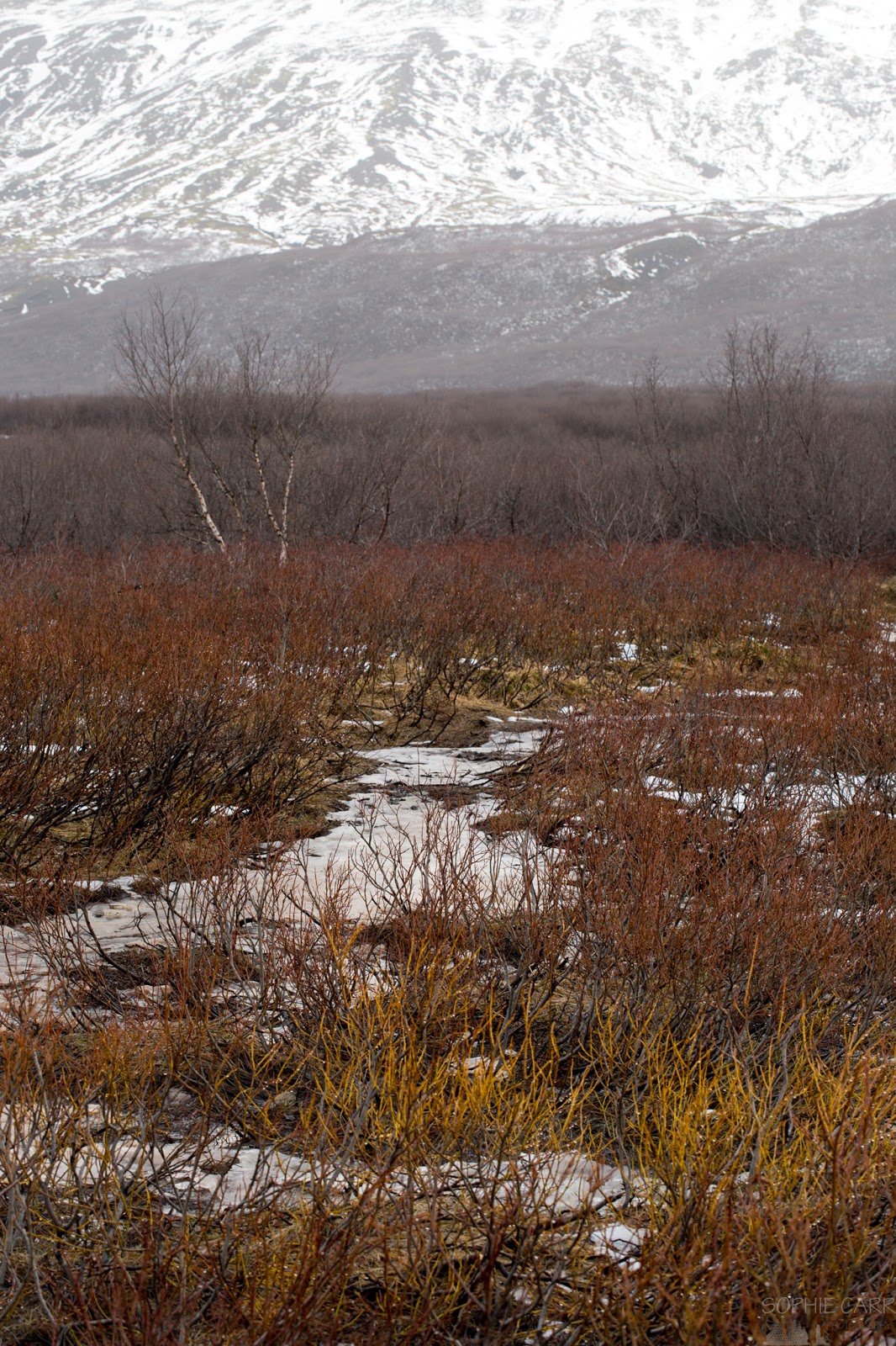 I find it so hard to tear myself away from some places, and this was certainly one of those places. I wish I'd had an even long zoom lens so I could capture more of the detail of the main falls. The sun began to disappear, so I headed back to the car. The birch trees were beautiful, some of them dripping with raindrops. The colours made it look autumnal, but it was just the branches are very red.